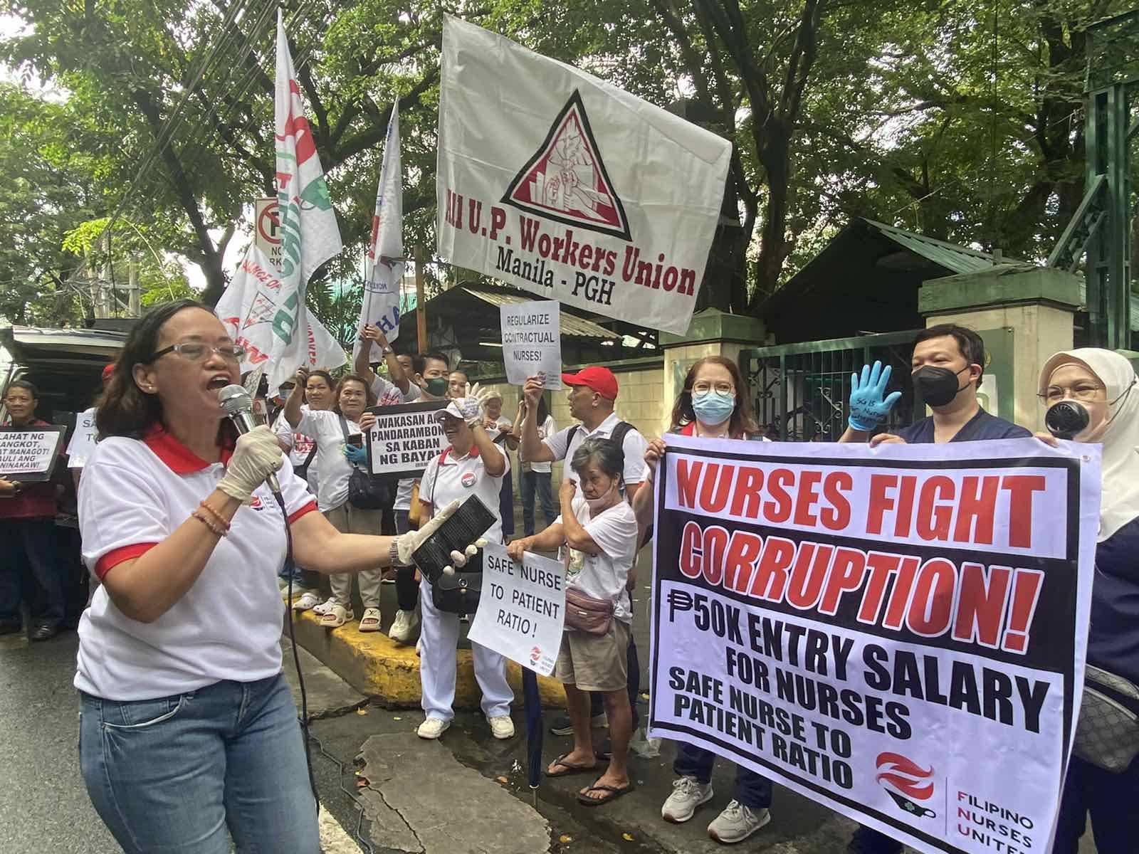 Giit nila, habang naghihirap ang mga manggagawa pangkalusugan, bilyon-bilyong piso ang kinukurakot umano ng mga tiwaling kongresista, senador, at maging si Pangulong Marcos Jr.